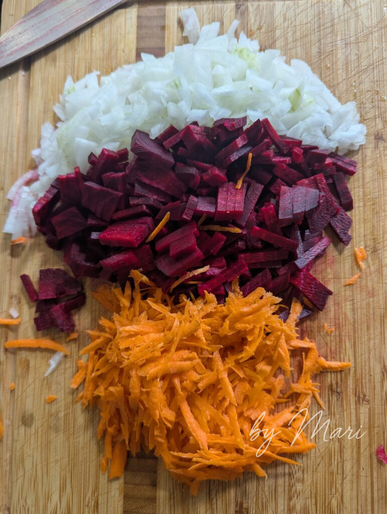 - Свекла — 1–2 шт (нарезать)