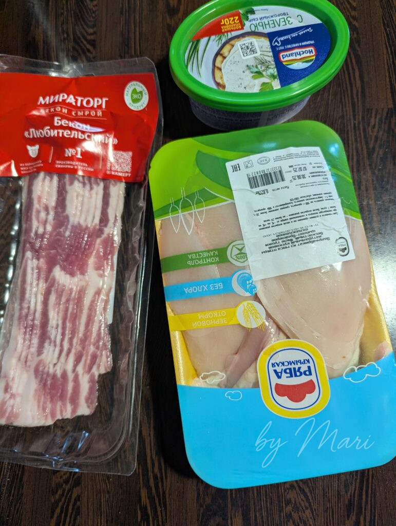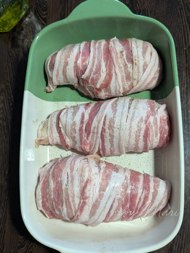 - Бекон придаёт курице яркий вкус и делает её сочной.