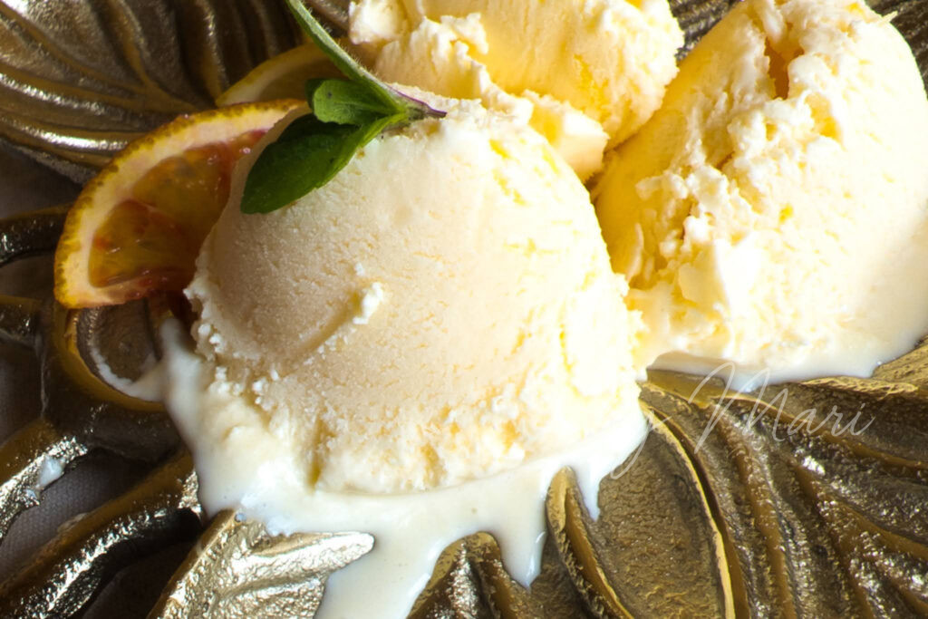 …Мой рецепт был вдохновлен классическим gelato al limone — я использую заварной крем, который делает текстуру мороженого невероятно нежной и воздушной, а лимон придаёт яркую кислинку.