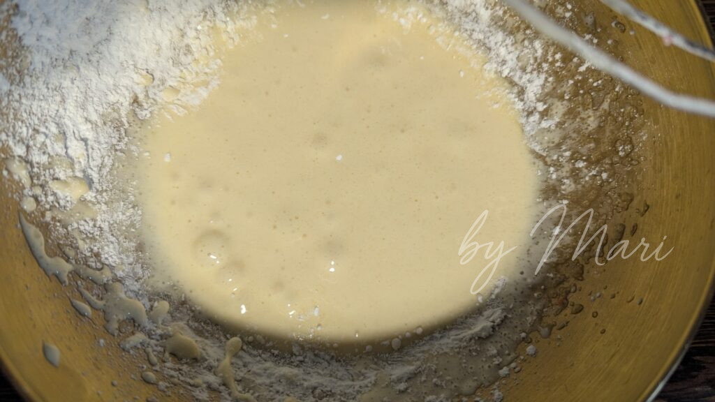 - Постепенно добавляйте сахар, продолжая взбивать, затем добавьте лимонный сок.